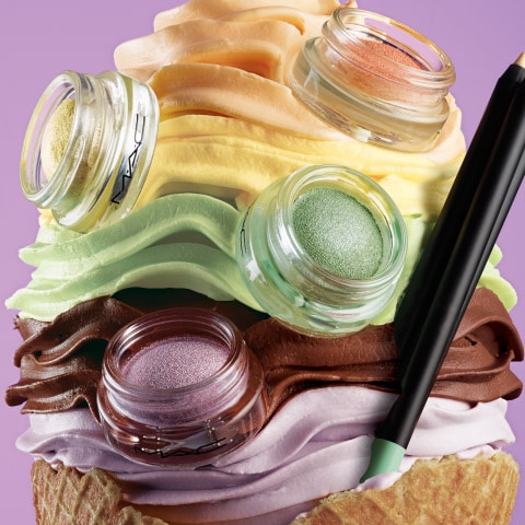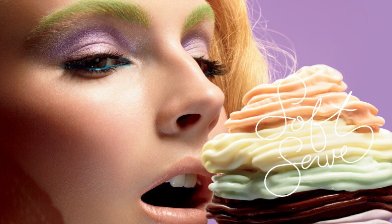 Try overindulging on servings of Soft Serve Shadow, featuring a distinctive creamy yet bouncy texture that sets to a powdery finish. Apply using our new 248 Small Eye Shader Brush with a flat paddle shape and synthetic fibres perfect for applying creamy shadows. Next, we dare you to give M·A·C Dare Hue! Brow Pencil a try. This gel-gliding, styling and sculpting pencil coats brows in unexpected matte colours with even pigment payoff.