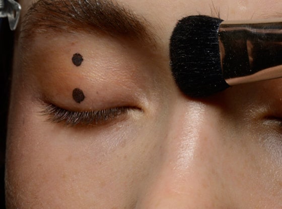 I worked with Daniel Sallstrom. We used the eye liner from my first show, which is something I try to use in all of my beauty looks, as I think it worked really well. It extends the corner of your eye to give a more supernatural look. You add more makeup around it and it almost appears like it’s part of your actual eye. Daniel also likes to tape the face to pull back the eyebrows. You would usually hide this with the hair, but we decided to treat it as a deformation by covering the tape with pearls.