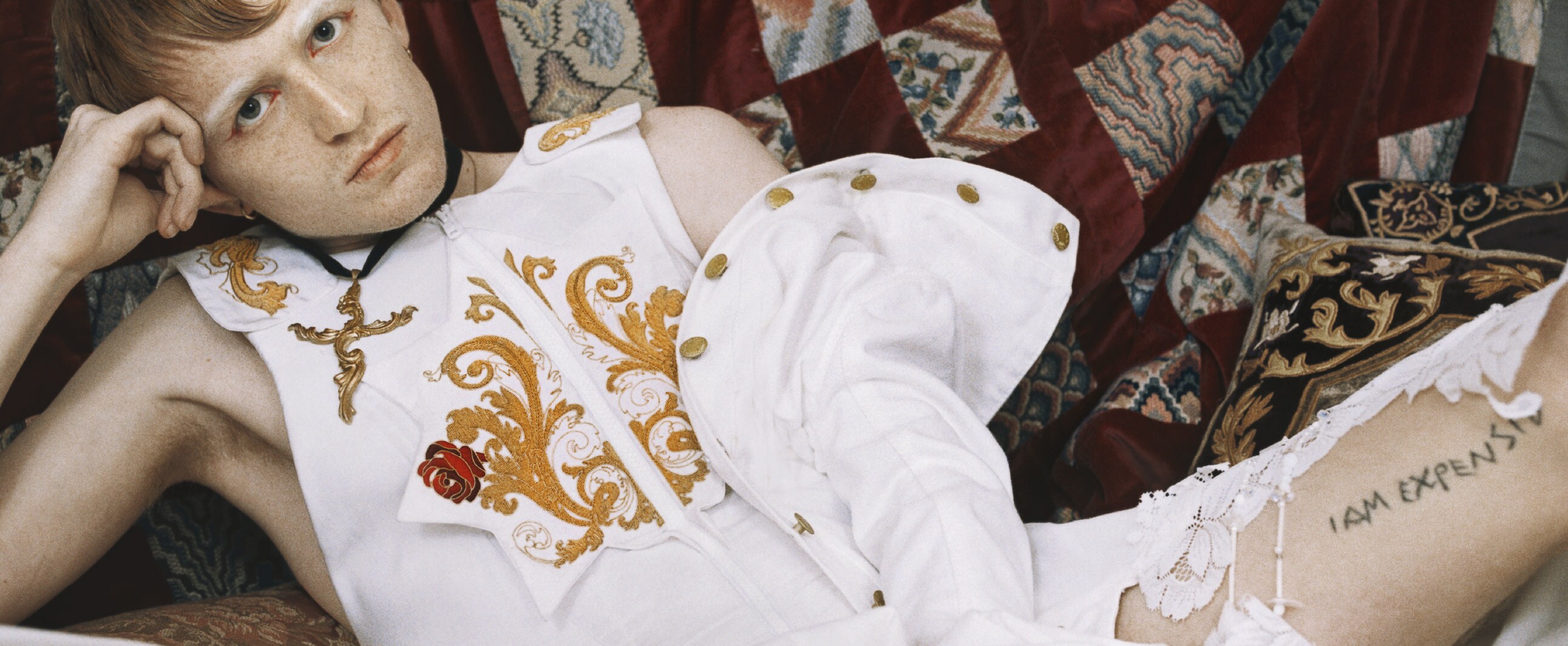 Fashion designer Ed Marler may be new to the scene, but his audacious, oddly romantic, gothic fairy-tale approach to design has made him a breakout star, a subversive hero reclaiming a fashion world desperate for a fresh perspective. A recent graduate of Central Saint Martins, Marler debuted his first collection at London’s SS15 Fashion East Show, a parade of club kids turned vampires walking the runway to Kyle Minogue, bejewelled, brocaded, richly layered and gender-bending. Unsurprisingly, he wowed, waking up audiences with his provocative, devil-may-care point of view, reminding fashion communities both in London and abroad what it means when designers push the art form to its limits, blurring boundaries, making statements, and, well, having some fun.