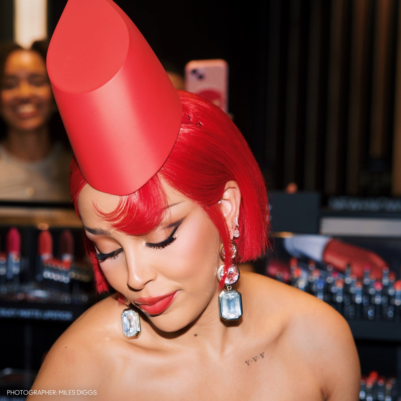 도자 캣은 맥 매치 데이에 레이디 데인저 립스틱을 형상화한 거대한 립스틱으로 변신해 캘리포니아 글렌데일 갤러리아에서 팬들과 만났어요. 그녀의 시그니처 레드 립 컬러에서 영감을 받은 강렬한 룩을 만나보세요.