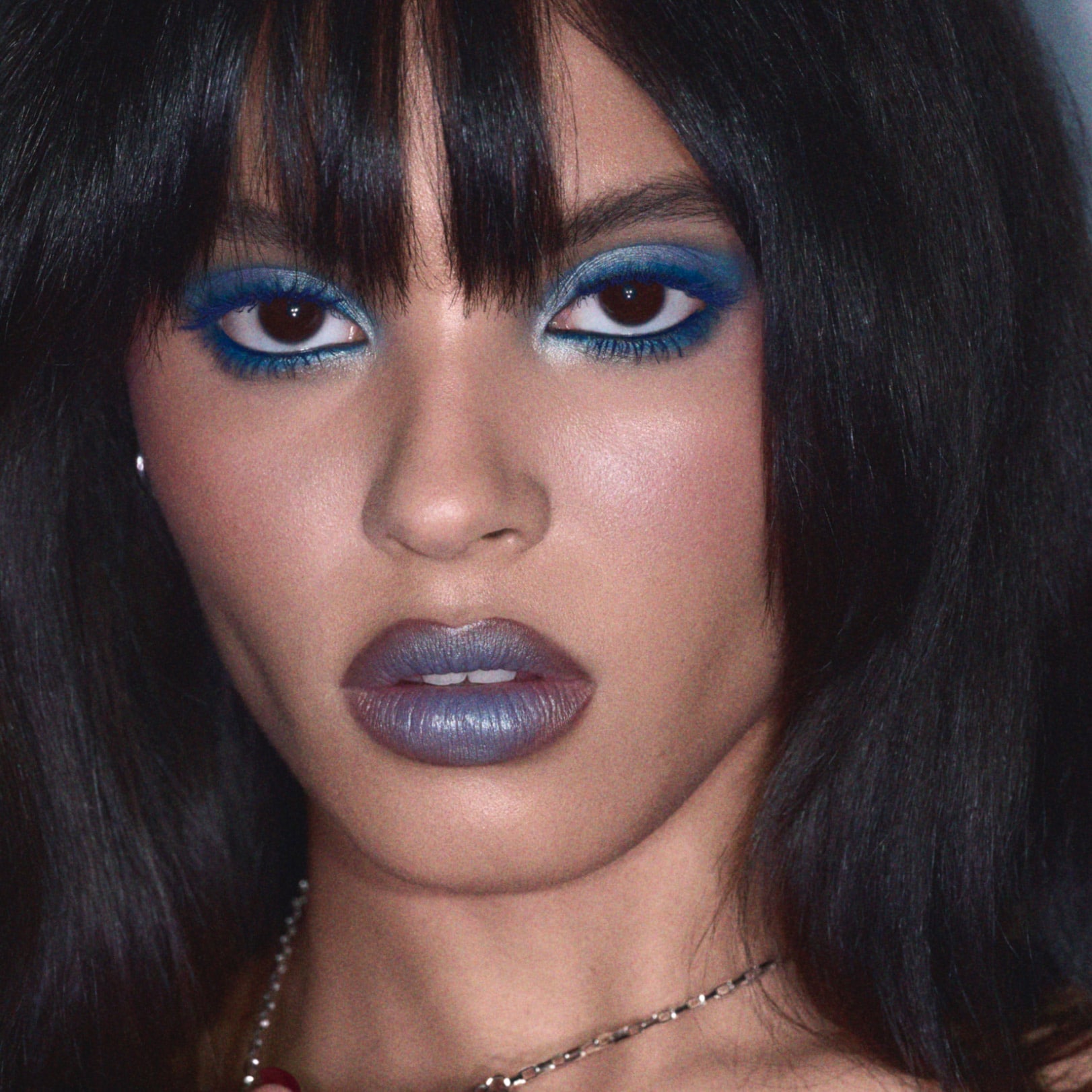 새로운 글로시 립 라이너 나이트모스위에 틸티드 데님을 가볍게 블로팅해 룩에 블루 포인트를 더하세요.